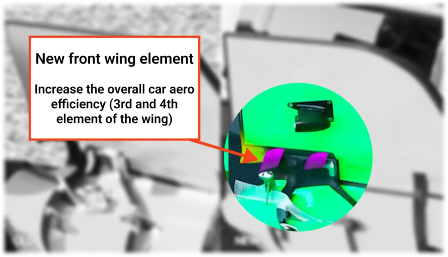 Kick Sauber are hoping to increase their single lap pace which has been hindering them this year so far. They have also brought another upgrade to the front wing. They have introduced changes to the third and fourth element of the front wing which is aimed at increasing the overall car aero efficiency. Kick Sauber also made changes to the front wing endplate which has been redesigned to help the other elements changed work better.